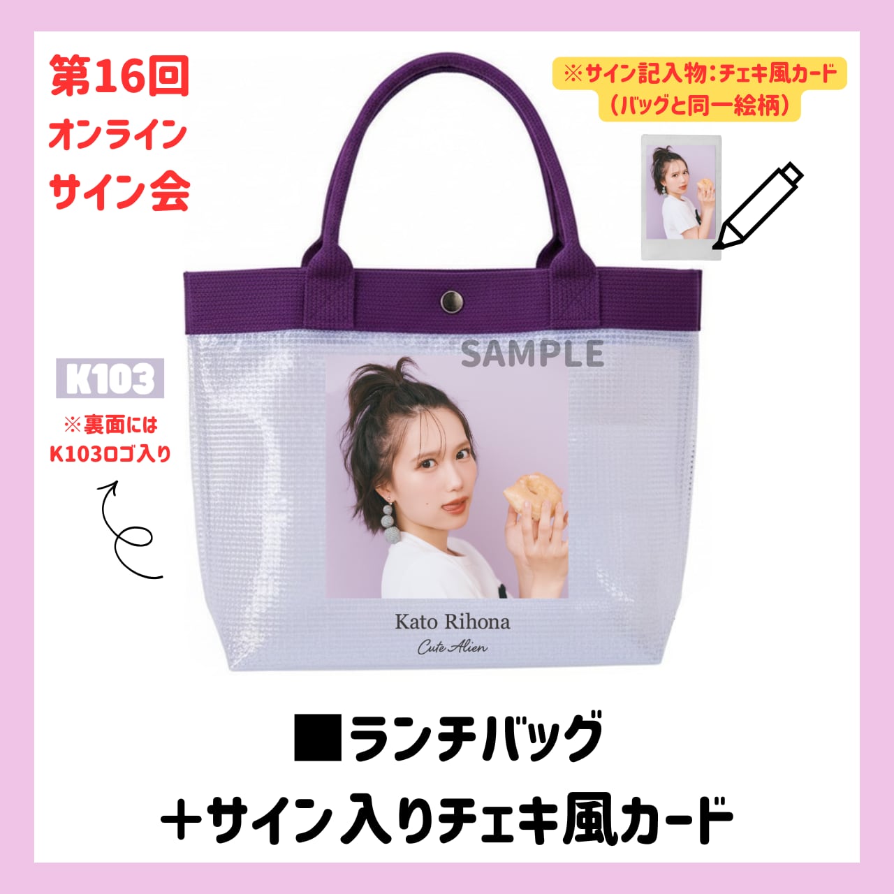 ランチバッグ+サイン入りチェキ風カード【第16回 加藤里保菜オンラインサイン会】